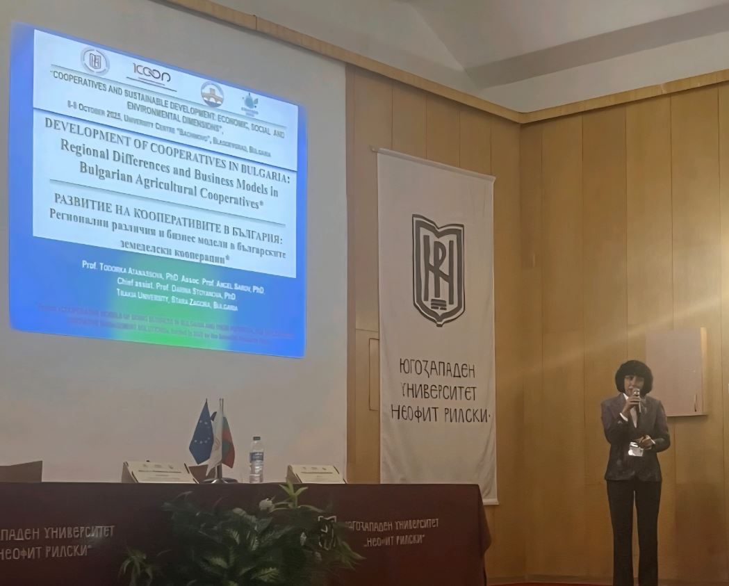 Сесията завърши с доклада на проф. д.ик.н. Тодорка Атанасова и доц. д-р Ангел Саров от Тракийския университет в Стара Загора, които поставиха фокус върху разнообразието и устойчивостта на кооперативните модели в аграрния сектор, подчертавайки значението на адаптивността и иновациите за дългосрочното развитие на земеделските кооперации в България.