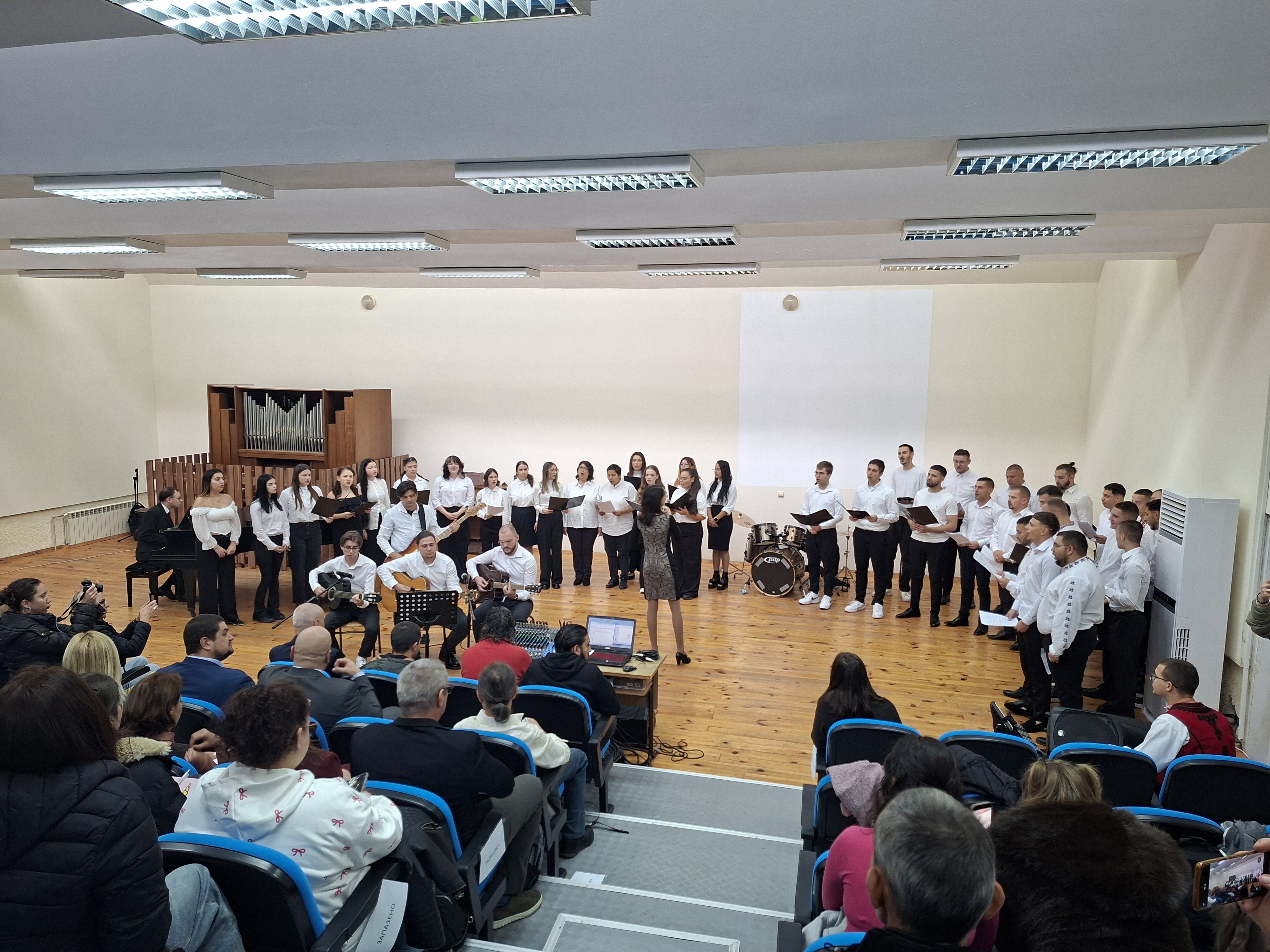 Тържествената програма започна с изпълнение на Академичния хор на Югозападния университет. Под диригентството на гл. ас. д-р Магдалена Лобутова младите хористи представиха „Гаудеамус игитур“ и „Слънце в очите ти“.