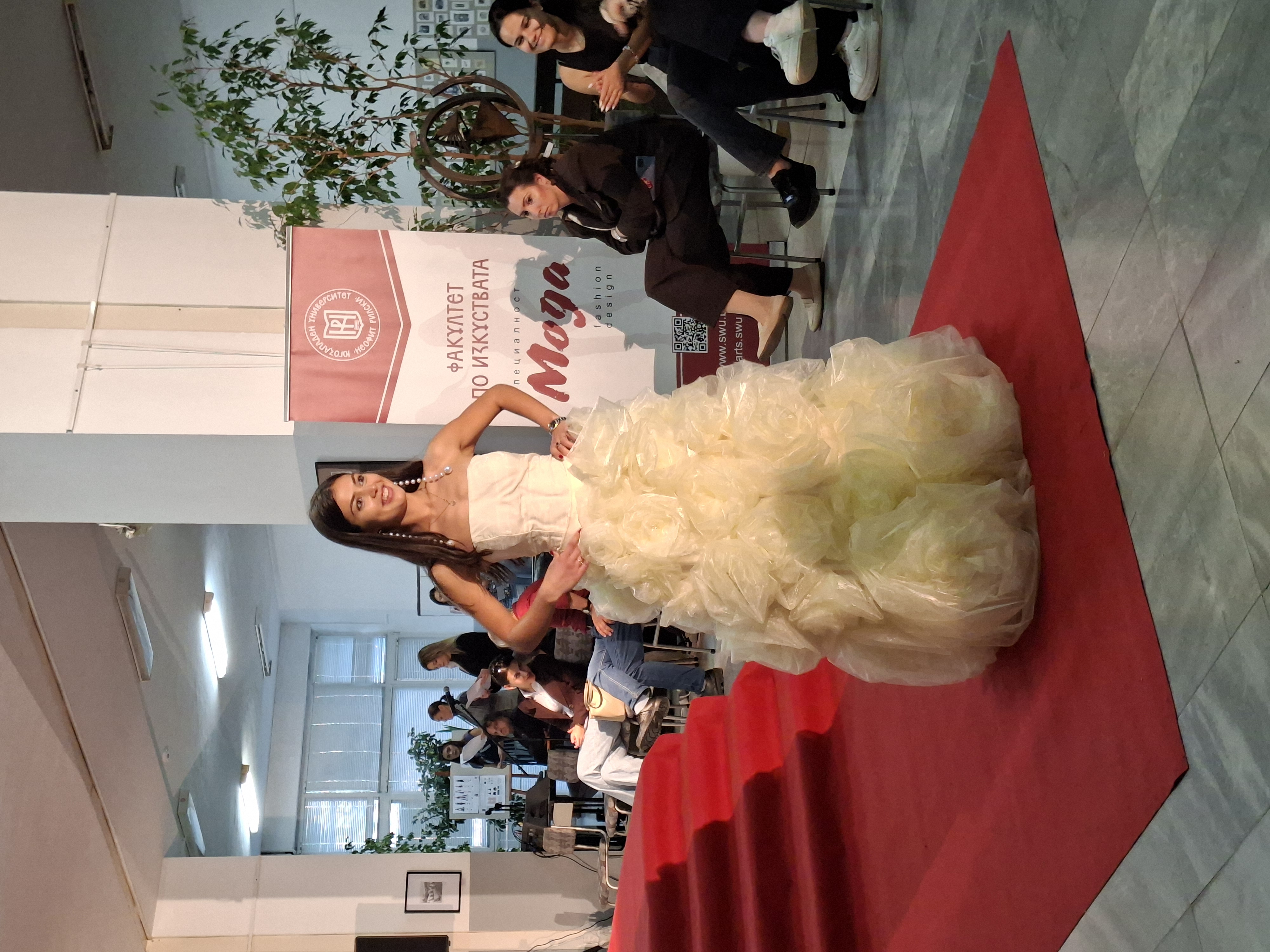 За поредна година фоайето на Първи учебен корпус се превърна в сцена за изява на талантливи млади дизайнери от Югозападния университет, Националната художествена академия (НХА) в София и Нов български университет (НБУ). Вдъхновени от съвременните модни тенденции, студентите представиха оригинални колекции, с които впечатлиха публиката и показаха разнообразие от стилове и тематики – от класическа елегантност до авангардни експерименти с форми и материи.