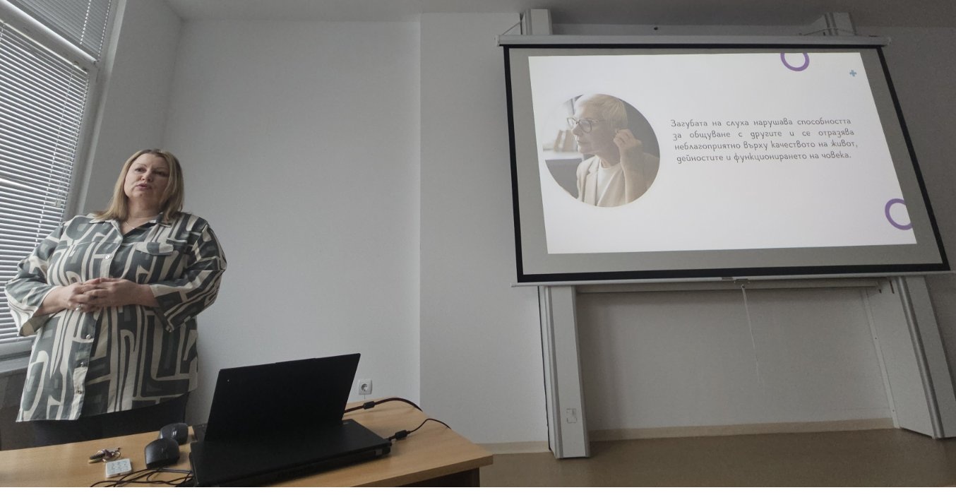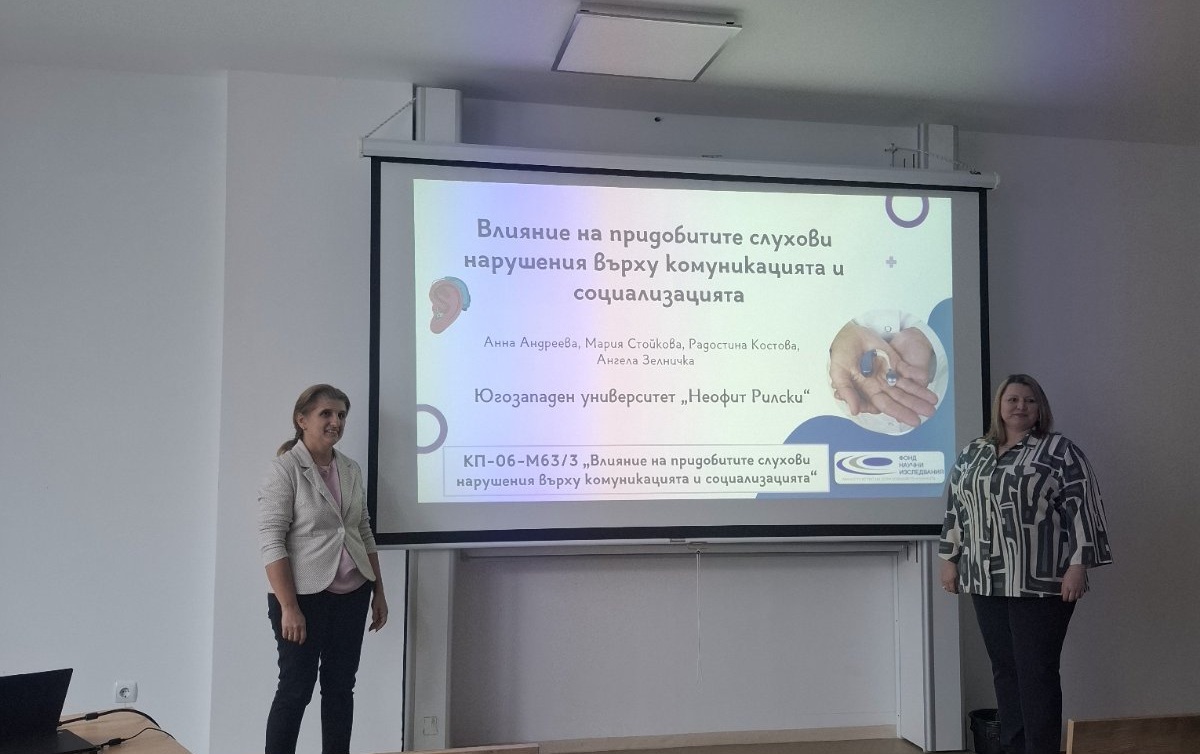 В Югозападния университет „Неофит Рилски“ се проведе семинар на тема „Влияние на придобитите слухови нарушения върху комуникацията и социализацията“. Събитието привлече вниманието на студенти, преподаватели и специалисти от практиката, работещи в областта на общественото здраве и здравните услуги.