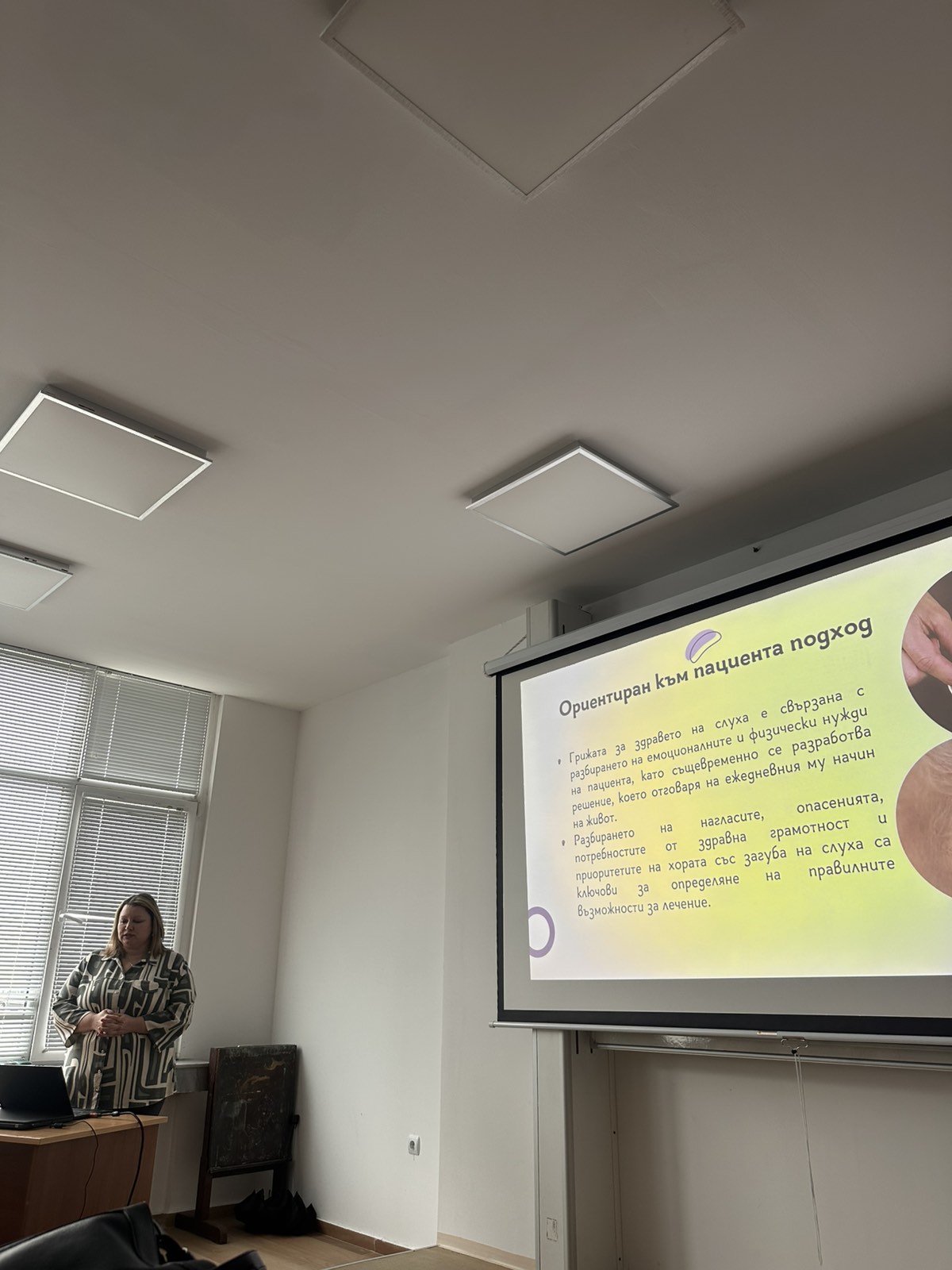В рамките на събитието бяха обсъдени основни маркери за намален слух, които могат да подпомогнат ранното откриване на слухови нарушения и своевременното насочване към здравни и социални услуги. Подчертана беше важността на ранната диагностика и интервенция като ключови фактори за успешна комуникация и социална интеграция.
