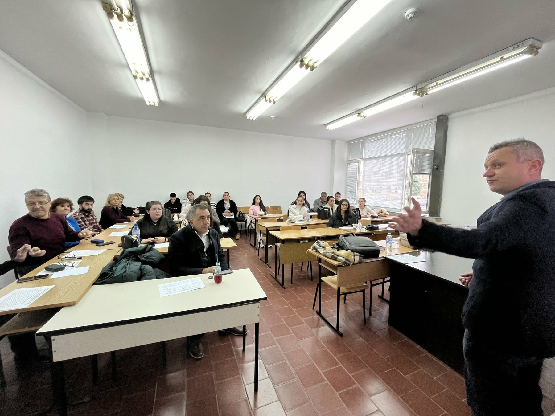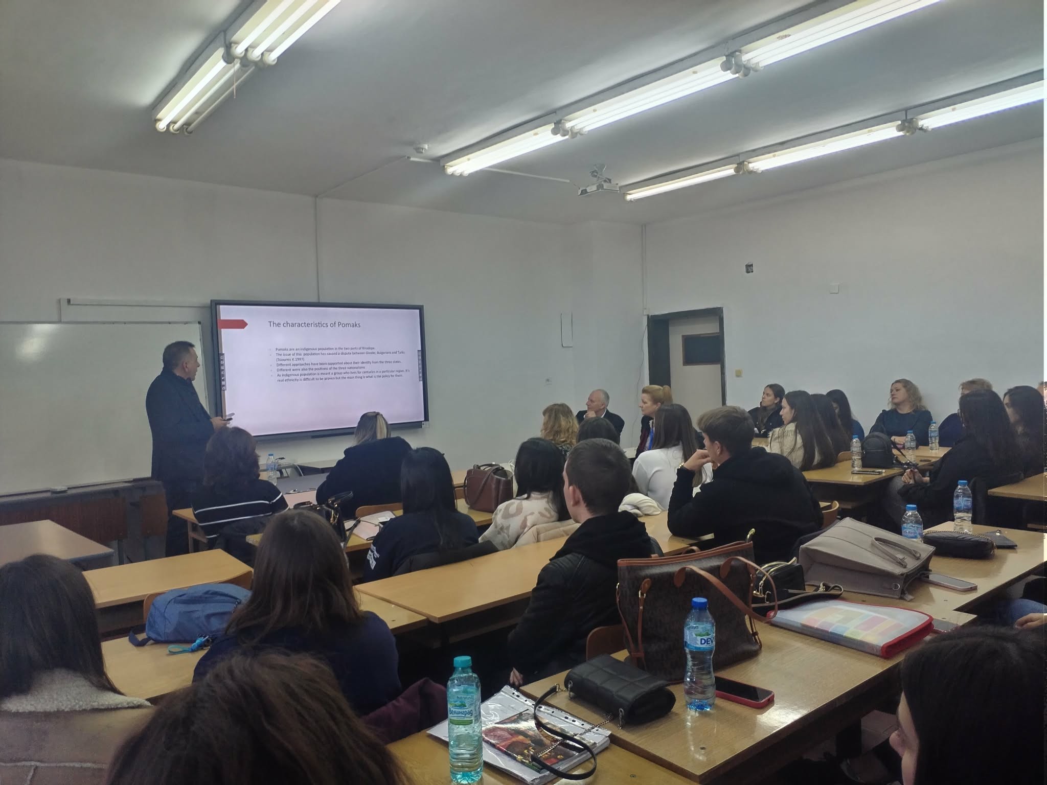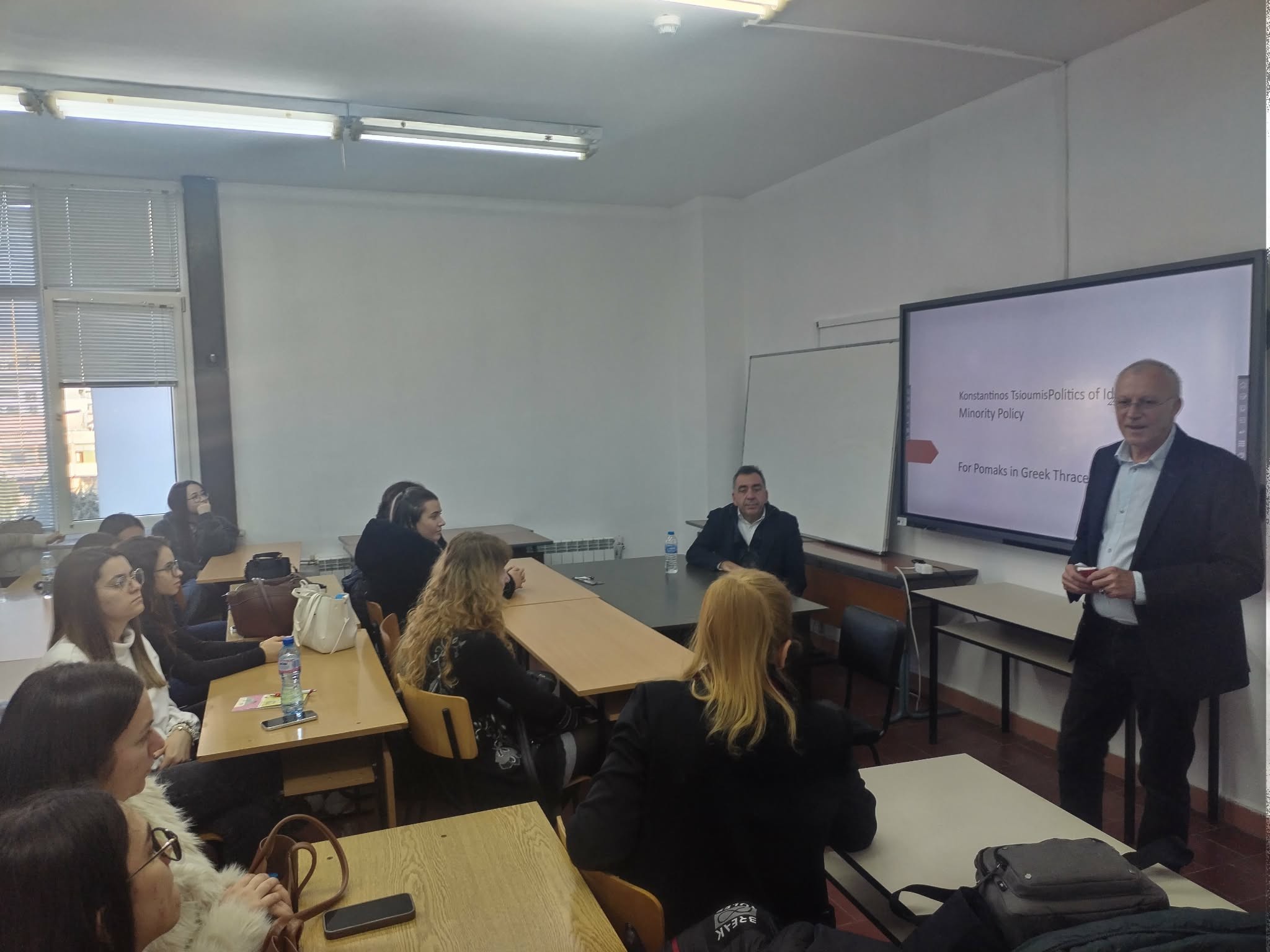 Проф. Константинос Цюмис се спря върху проблемите с малцинствената идентичност на помаците в Гръцка Тракия. Акцентът беше върху образователните стратегии на Гърция в различни исторически периоди, насочени към интегрирането на помаците. Лекцията на проф. Цюмис предизвика оживена размяна на мнения.