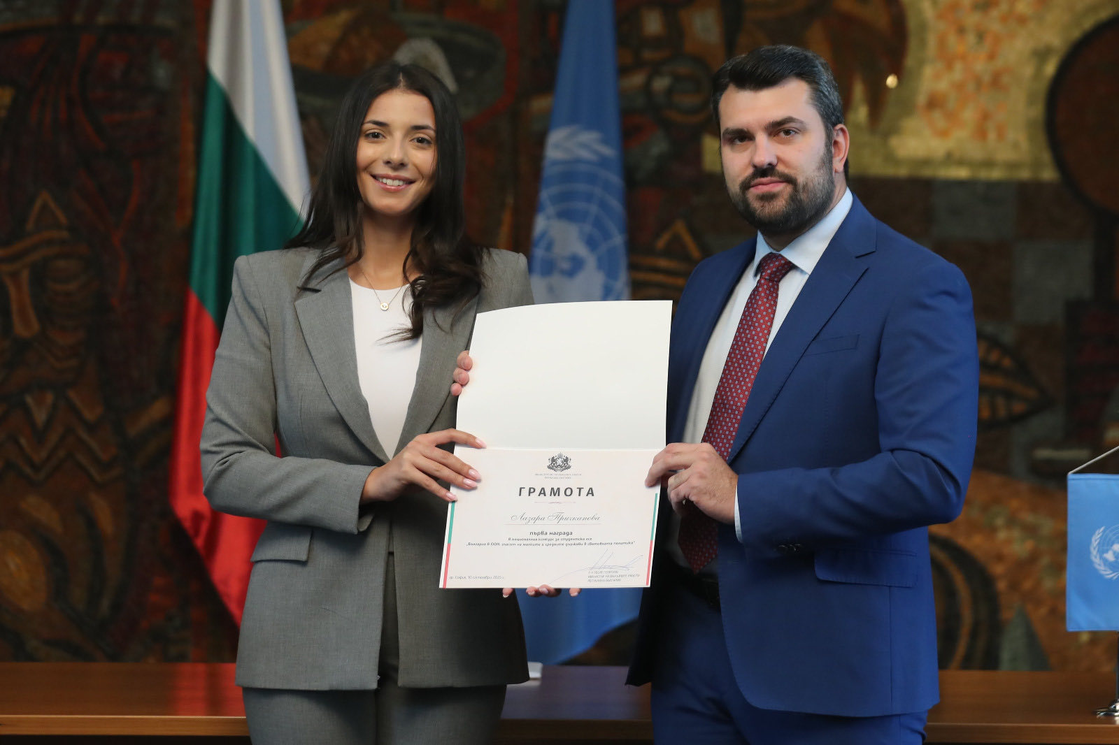 Като победител тя ще бъде включена в състава на българската делегация, която ще участва в 80-ата сесия на Общото събрание на ООН в Ню Йорк, където ще произнесе реч по повод годишнината.