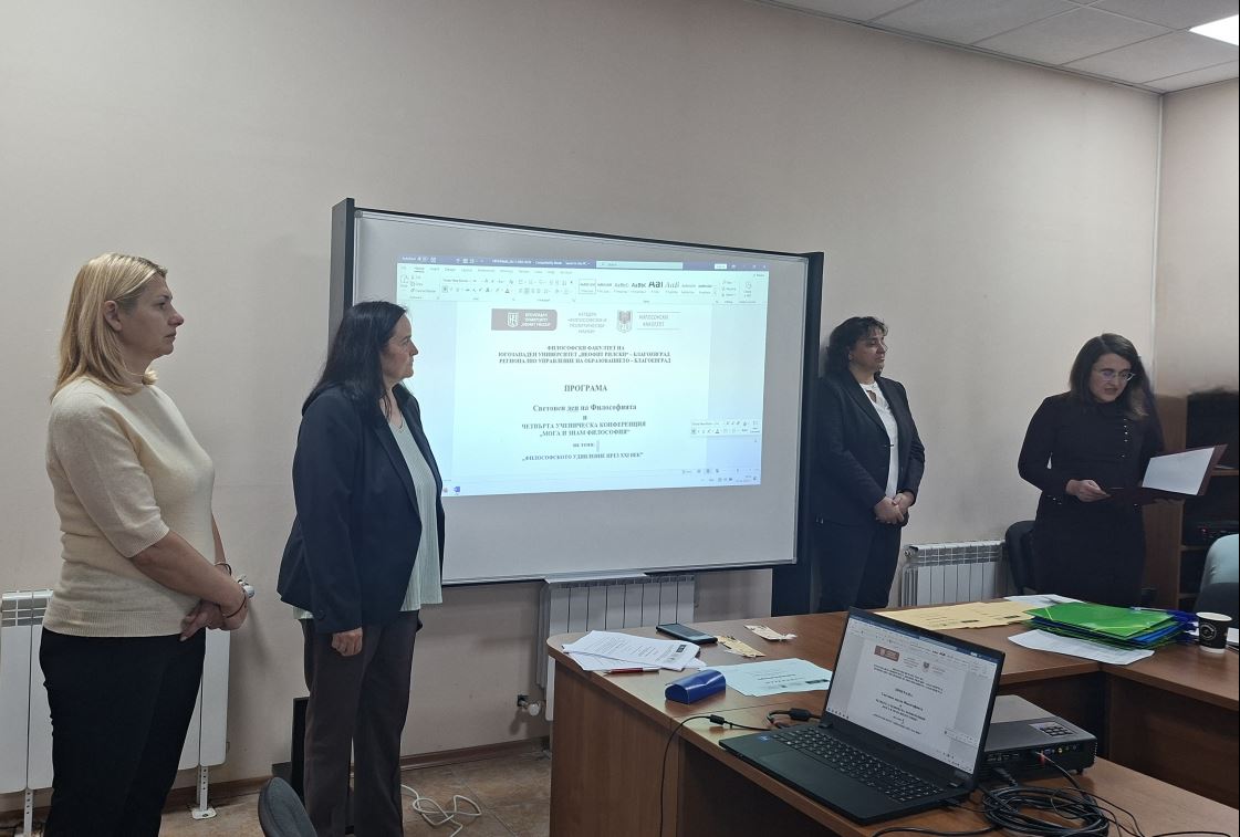 Приветствие към участниците поднесе заместник-ректорът доц. д-р Петрана Стойкова, която подчерта, че философията е не само наука, но и форма на обществено съзнание, както и своеобразен път към личностно израстване и отговорно гражданство.